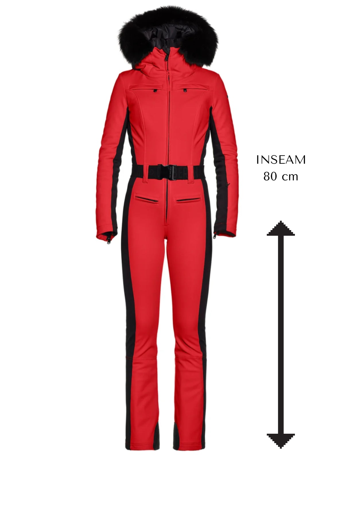 Parry is gorgeous longer length bright red all in one ladies ski suit in Goldbergh's signature softshell stretchy fabric and it is so special, we had to include it in our collection of our luxury ski wear for women. This ski suit is made with longer legs for taller women skiers. If you are a tall skier or have long legs, then this tall ski suit is made for you!