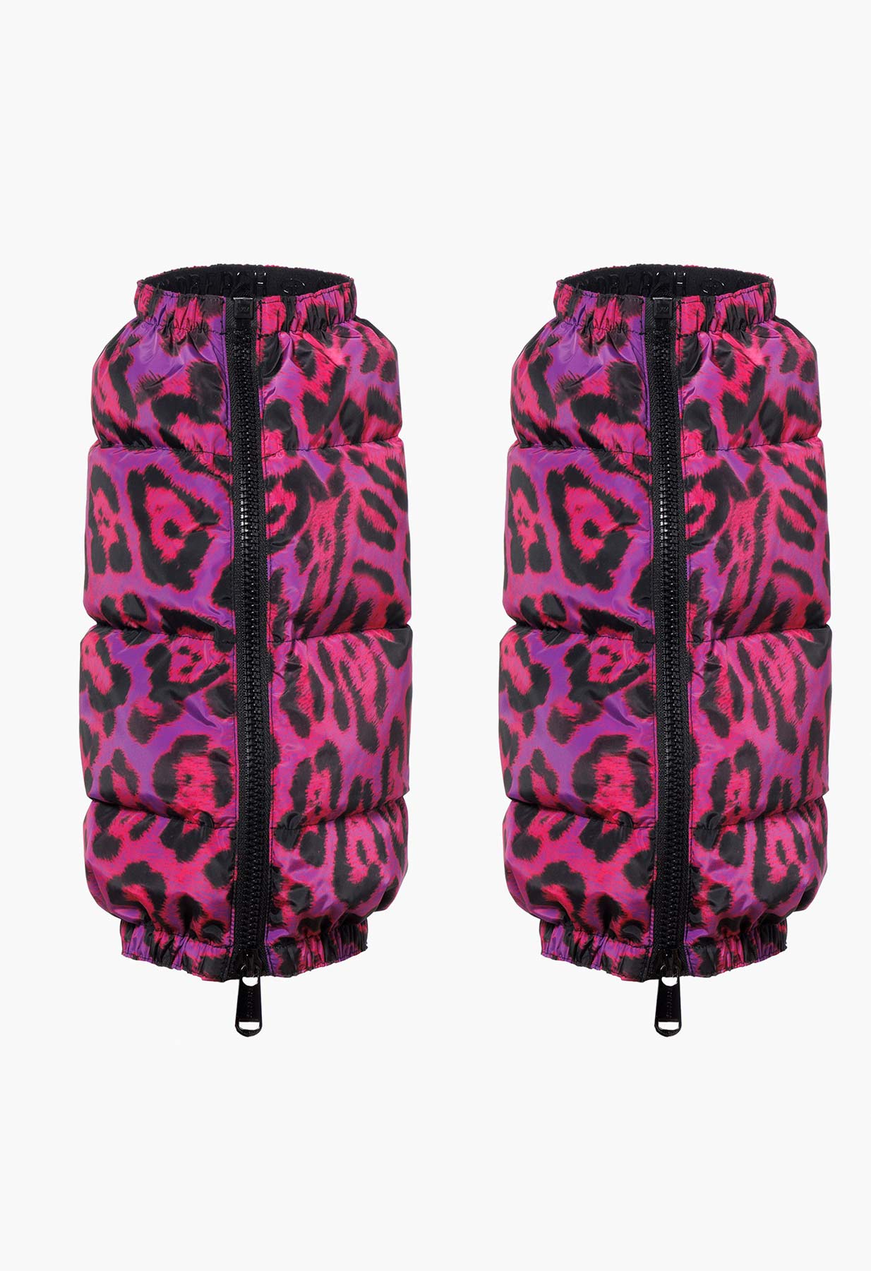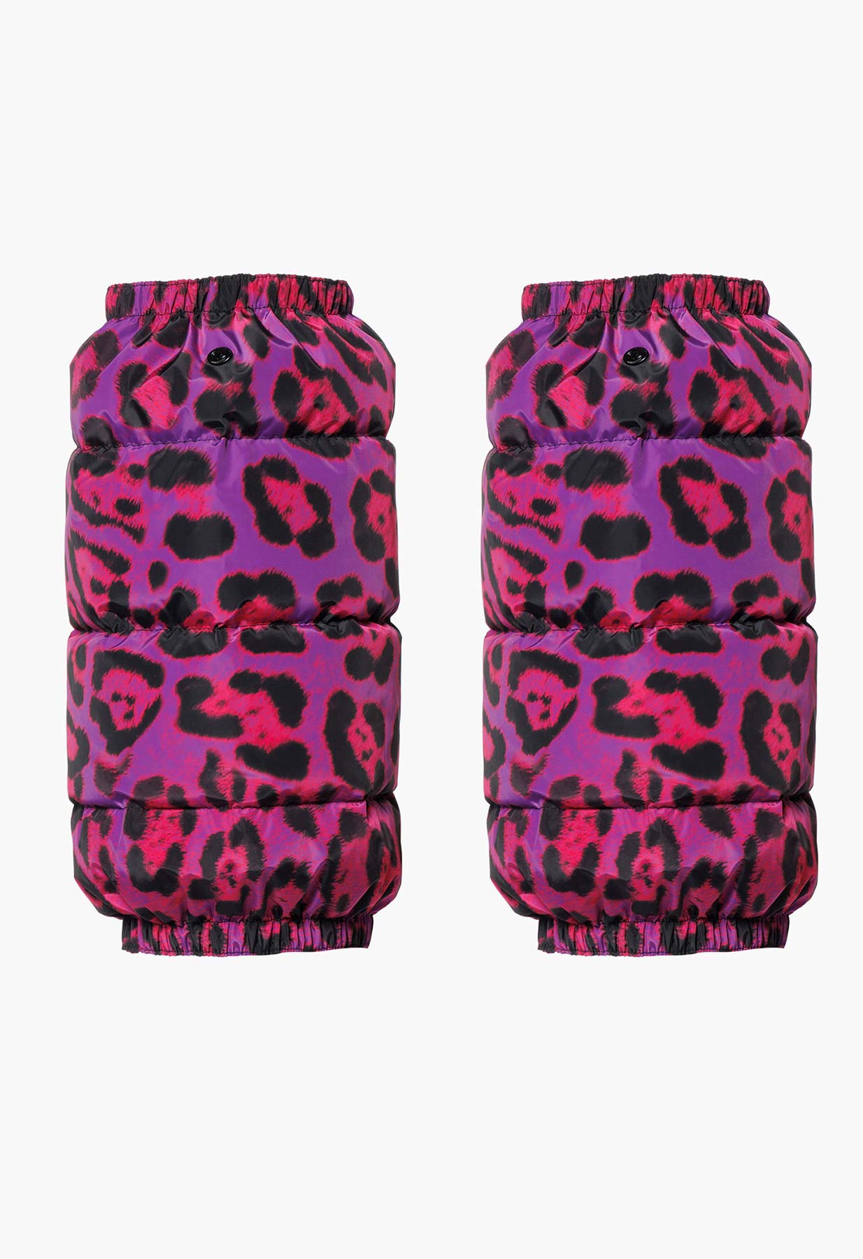 • Pink and purple jaguar print snow gaiters by Goldbergh