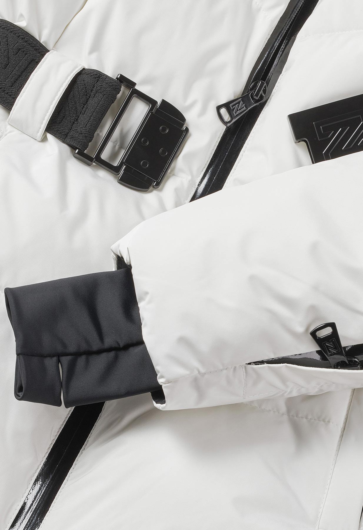 Nikkie white down ski jacket is simple, warm and pared back elegance. Dutch fashion brand Nikkie have reimagined typical puffer style ski jackets and created this stunning subtle ski jacket.