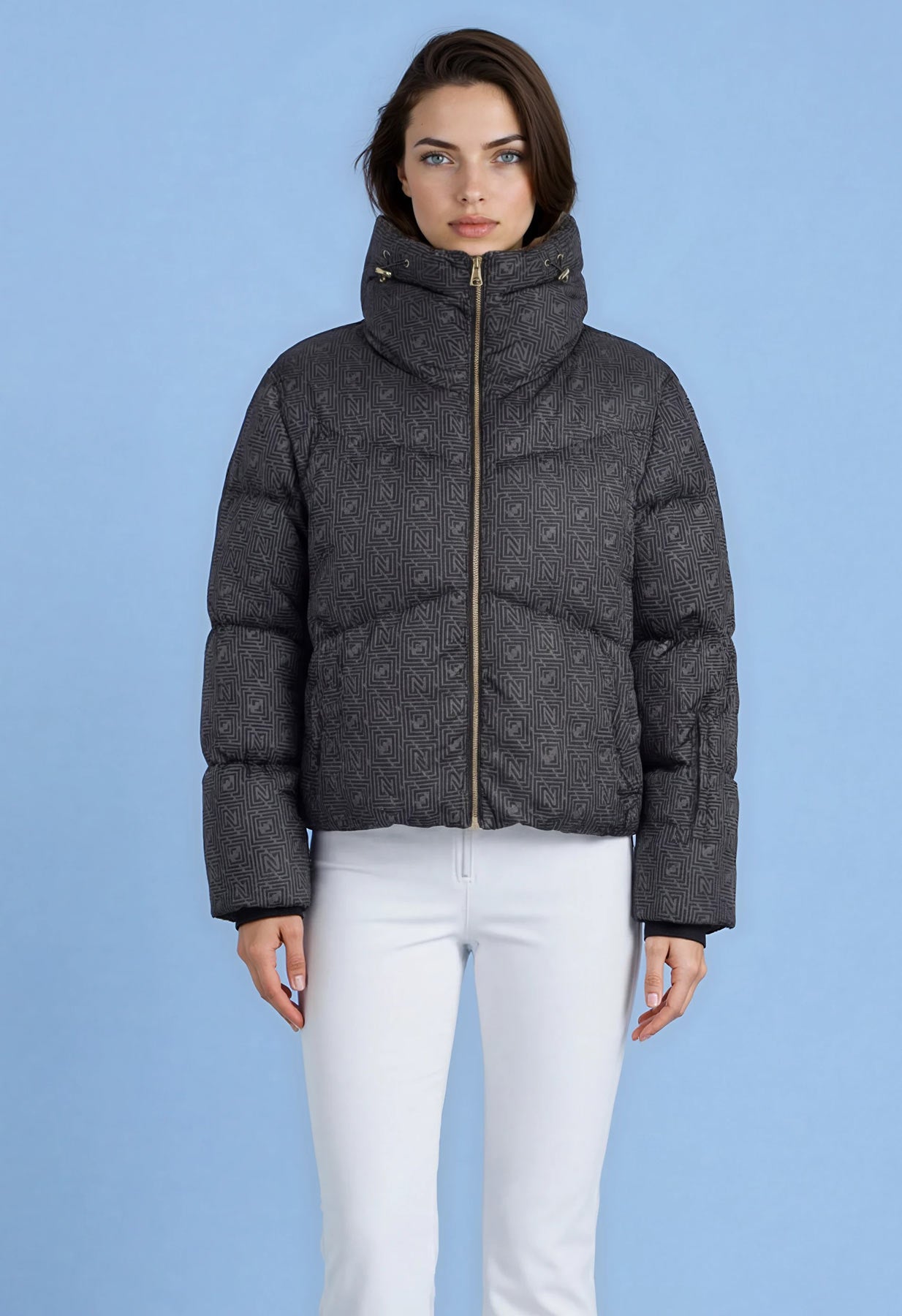The jacket’s minimalist style is elevated by signature NIKKIE logo patterns along the garment, adding a confident, sporty edge. The high collar and full zip closure provide adjustable coverage, while storm cuffs, zipped front pockets, and premium metal hardware ensure practical functionality. Lightly padded for warmth without bulk, it transitions seamlessly from slope to street.