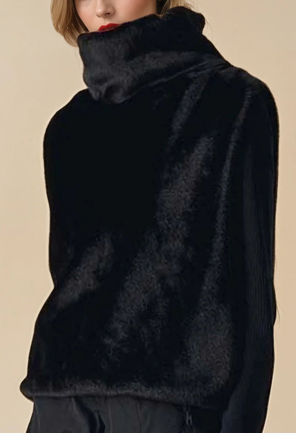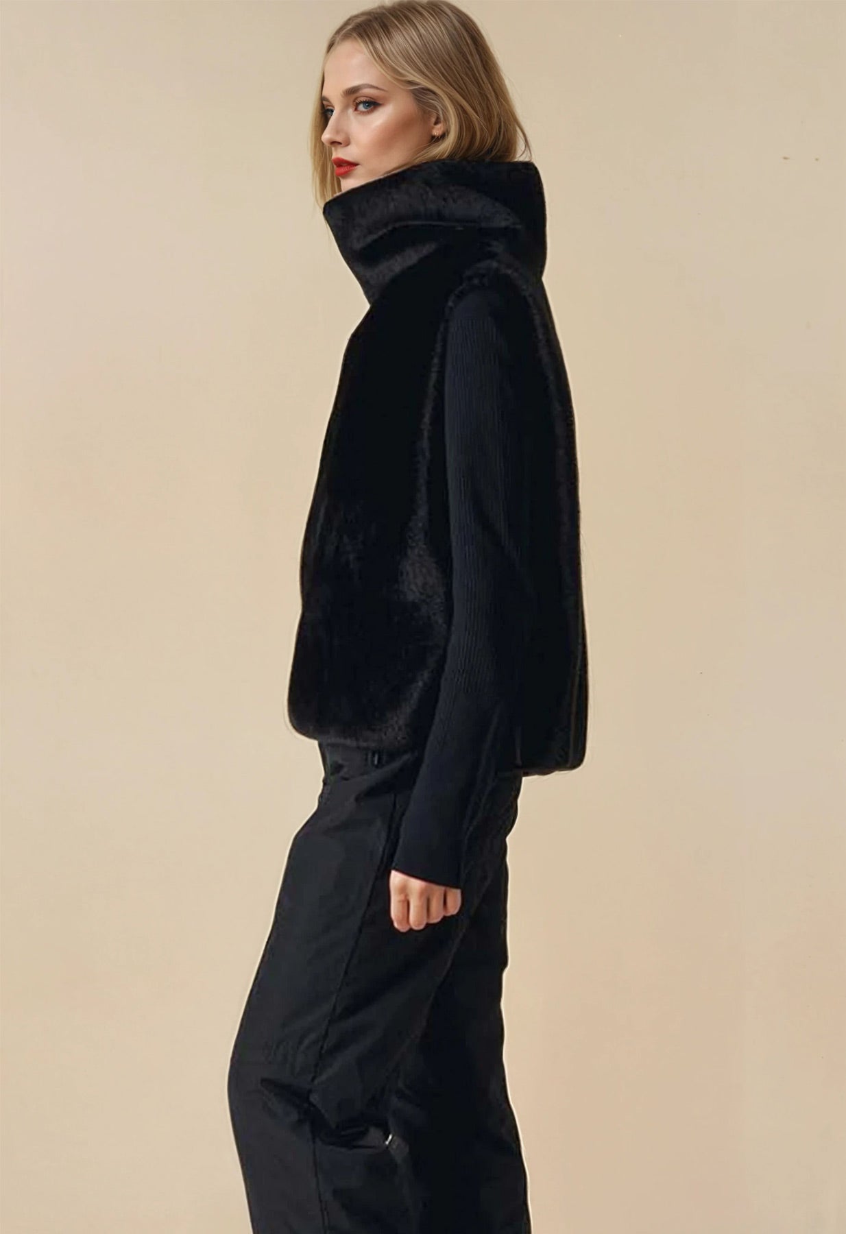 Poivre Blanc Furry Gilet in Black Faux Fur