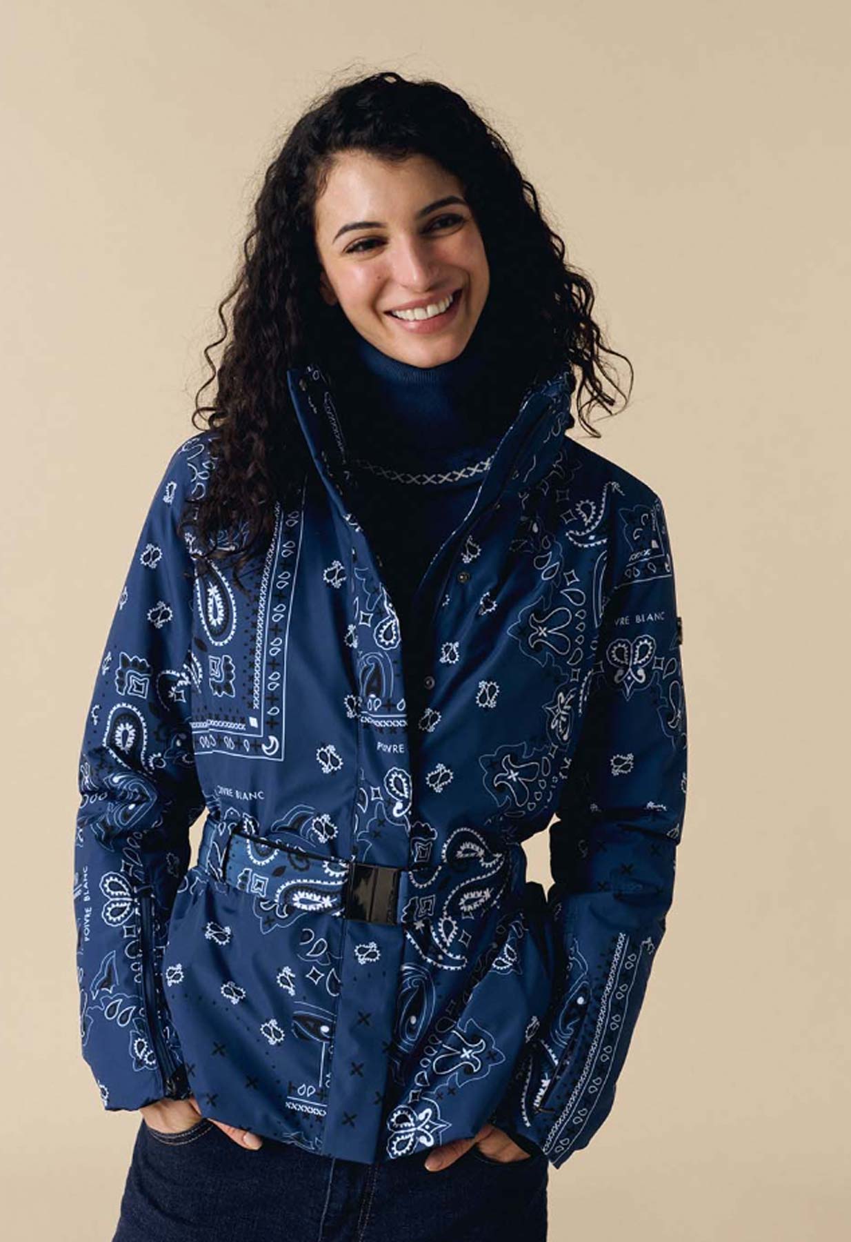The Poivre Blanc Joana Ski Jacket in Blue Paisley is the ultimate expression of elegant, modern ski wear — where technical innovation meets timeless, understated luxury.