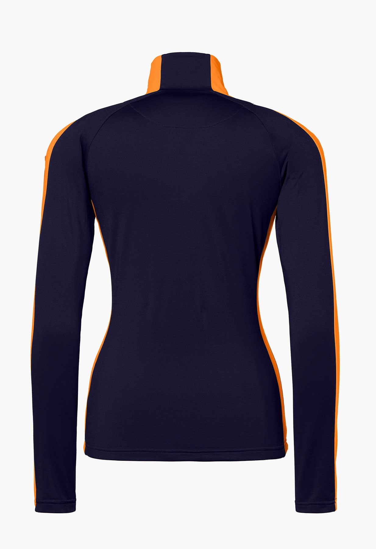 Crafted from a stretch-jersey knit fabric , this ladies ski base layer provides excellent moisture-wicking power and freedom of movement. The fabric is brushed on the inside for a soft feel against skin, offering breathability and warmth without bulk. The style of the Fuoco with its sleeve stripes has striking colour pop for a look that pairs beautifully with many ski jackets or matching accessories.